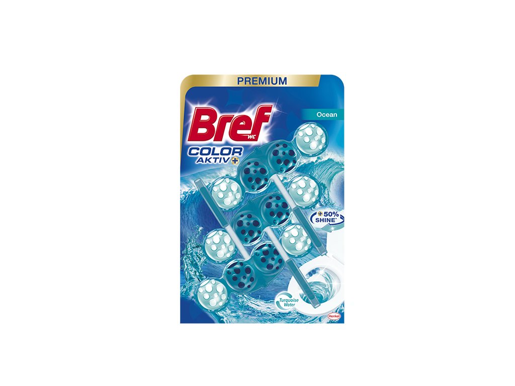 Bref Turquoise Aktiv Ocean je extra účinný WC blok, ktorý čistí toaletu aj medzi spláchnutím. Tiež ju chráni pred vodným kameňom a uvoľňuje sviežosť oceánu. Zároveň sfarbuje vodu do tyrkysového odtieňa, pre viac čistoty a sviežosti. Balenie obsahuje 3 × 50 g.