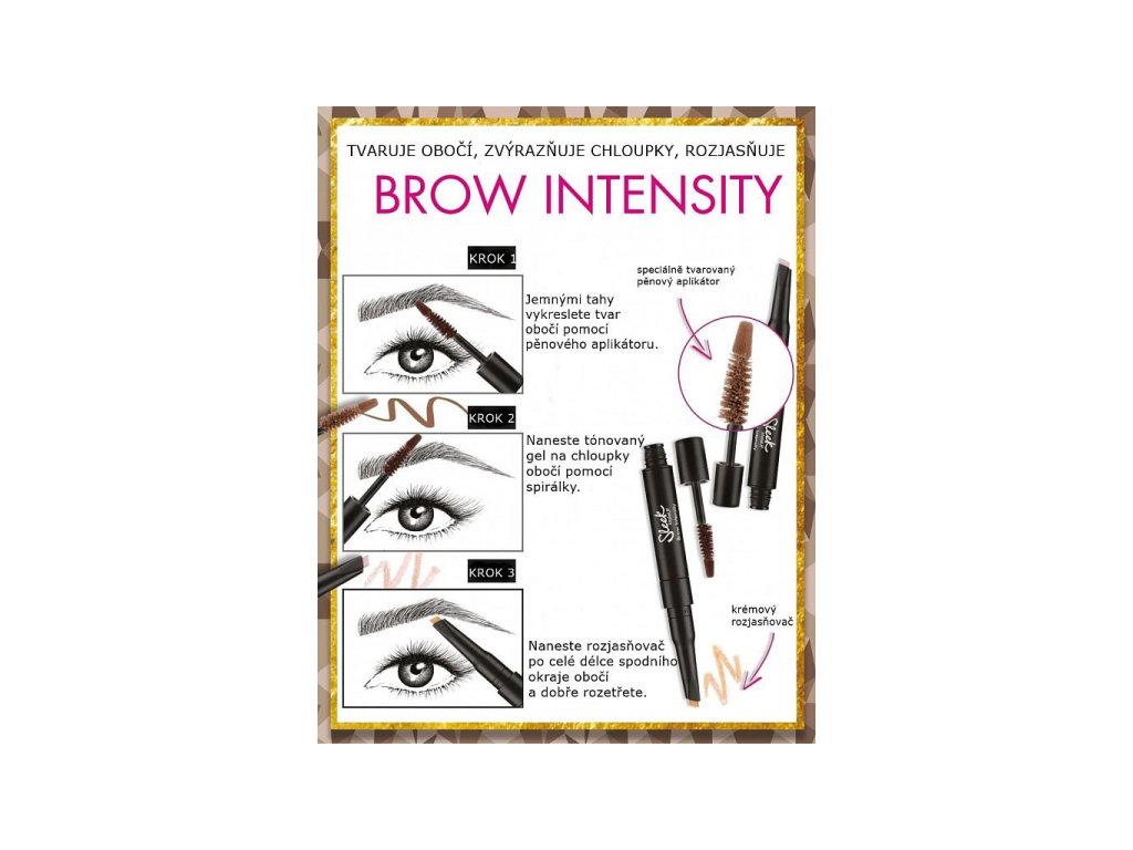 Sleek Brow Intensity je inovativní multifunkční produkt, který vám pomůže vytvořit krásné obočí. Použijte kuželovitý houbový hrot k definování obočí, kartáčový gel pro zvýšení hloubky a objemu, poté dokončete krémovým rozjasňovačem, abyste definovali oblouky. Dlouhotrvající a odolný vůči rozmazání. Mikrovlákna jsou přilnavá k pokožce a obočím a vytvářejí přirozenou plnost a definici.
