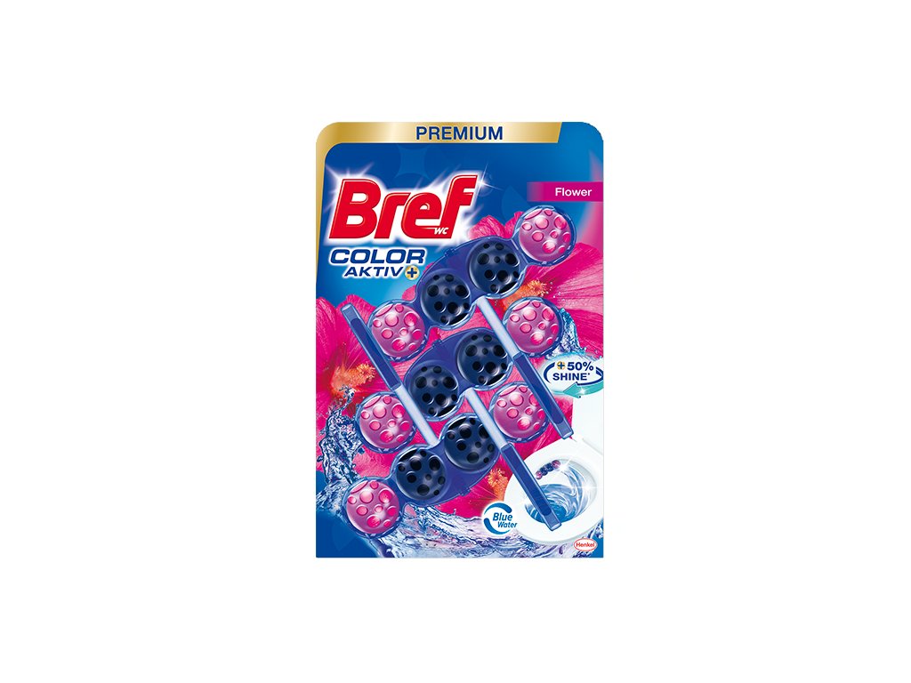 Bref Premium Color Aktiv - wc illatosító golyó friss virág 3x50g kék víz