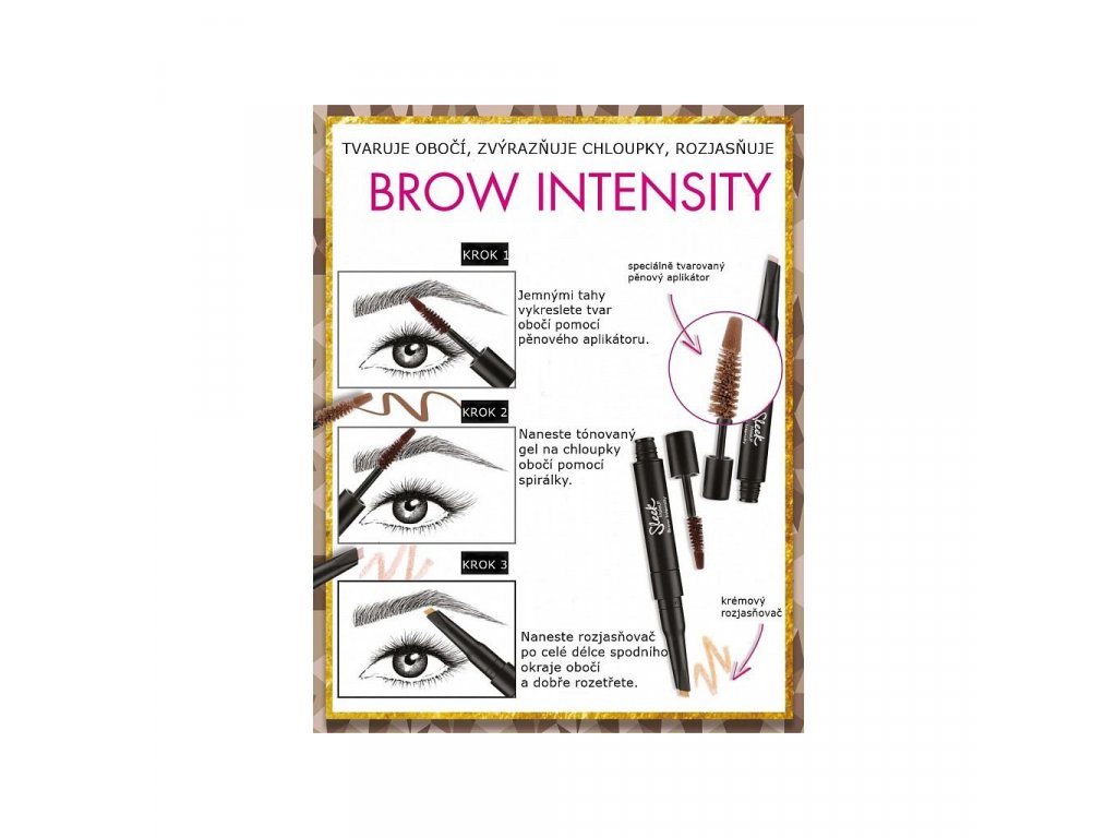 A Sleek Brow Intensity egy innovatív, többfunkciós termék, amely segít gyönyörű szemöldök kialakításában.Használja a kúpos szivacs hegyét a szemöldök meghatározásához, a zselés ecsetet a mélység és a volumen növeléséhez, majd fejezze be krémes kiemelővel az ívek meghatározásához.Hosszan tartó és maszatálló.A mikroszálak hozzátapadnak a bőrhöz és a szemöldökhöz, természetes teltséget és határozottságot hozva létre.