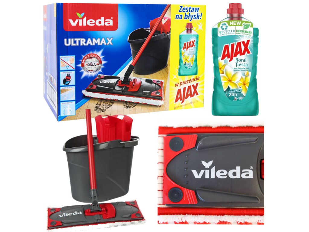VILEDA ULTRAMAX 2IN1 MICROFIBRE SET (VEDRO + PLOCHÝ MOP + AJAX 1L)